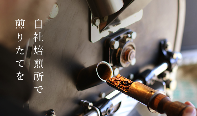 - お店からすぐの場所に、自社焙煎所を持っており、当店のコーヒー豆は、そこから届く煎りたてのものです。煎りたてだから感じられる香りと旨みをお楽しみください。